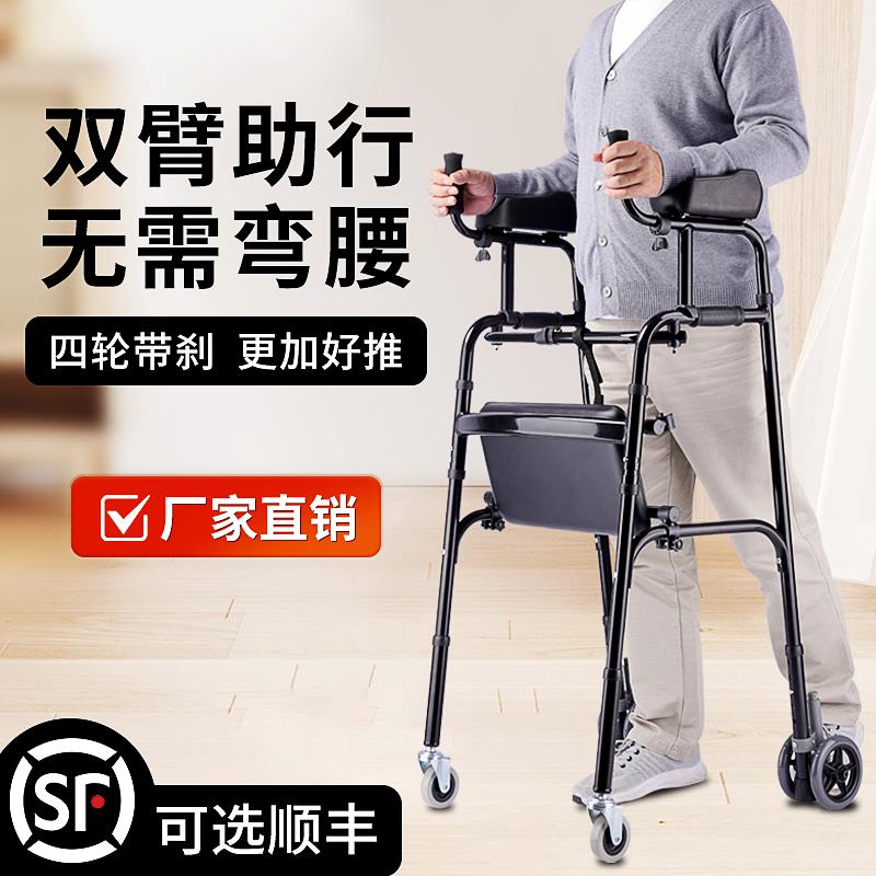 Skuter tua model baru dapat didorong dengan tangan, dapat duduk, membantu berjalan, dapat dilipat, dapat membantu orang tua, kereta belanja empat roda, anti jatuh
