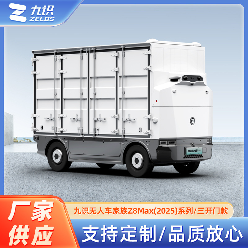 Kendaraan tanpa awak untuk distribusi dan transportasi logistik di taman perkotaan, kendaraan pengiriman pintar berkapasitas besar tiga pintu untuk pengiriman tanpa awak.