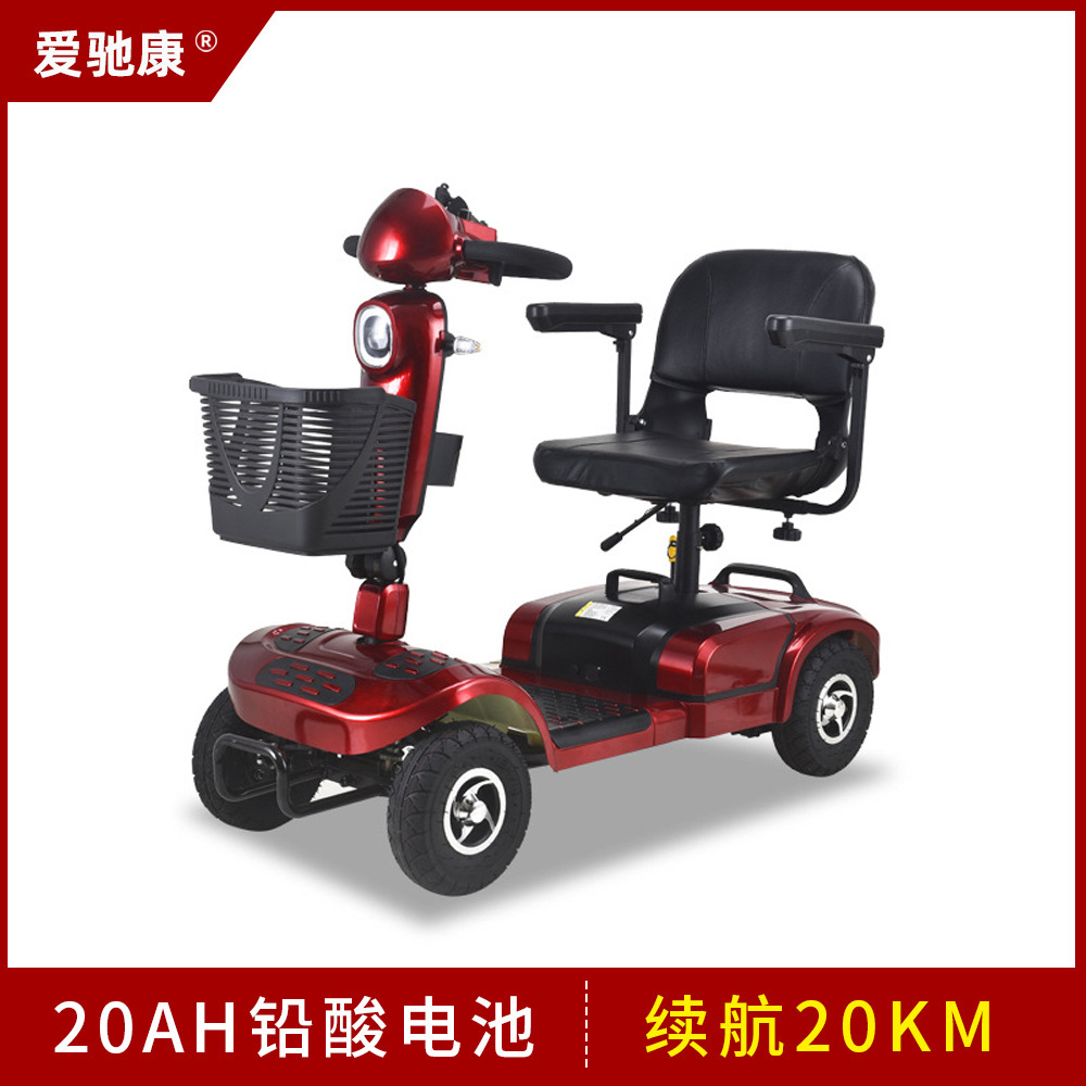 Mobil listrik empat roda orang tua, skuter listrik kecil empat roda baterai cacat ringan lipat orang tua