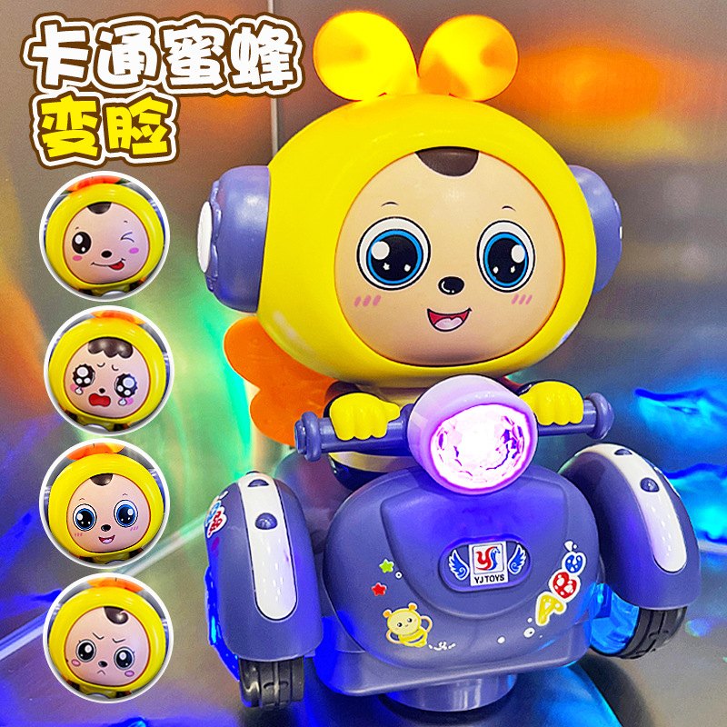 Tiktok mainan mobil roda tiga elektrik, gaya sama diskon besar mobil lebah kartun universal berjalan kaki tiga mobil mainan anak laki-laki dan perempuan