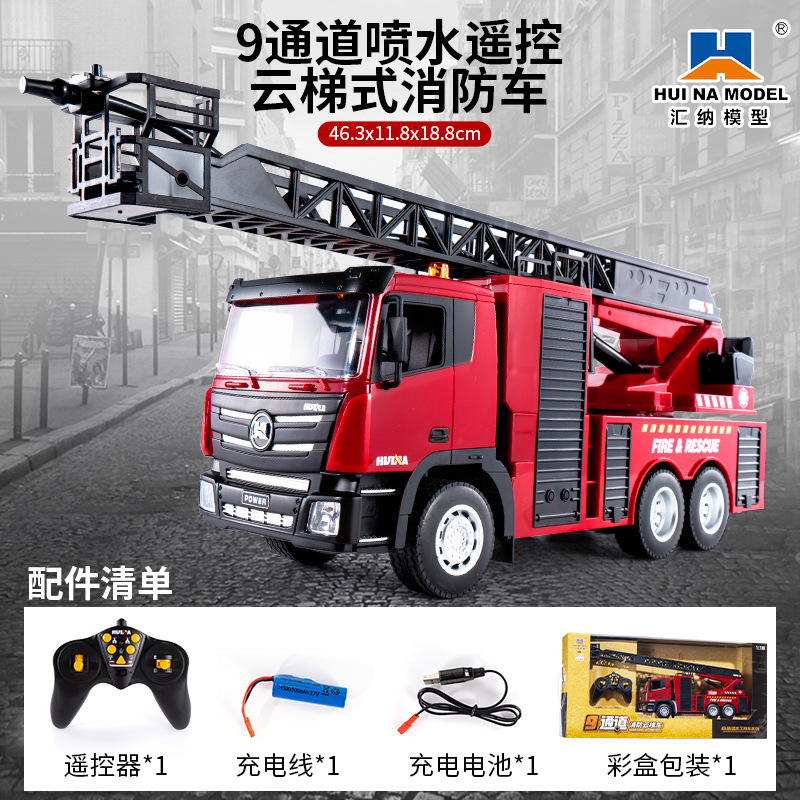 Huina 617 Sembilan saluran semburan air remote control tangga awan model truk pemadam kebakaran remote control mobil mainan listrik anak laki-laki dan perempuan