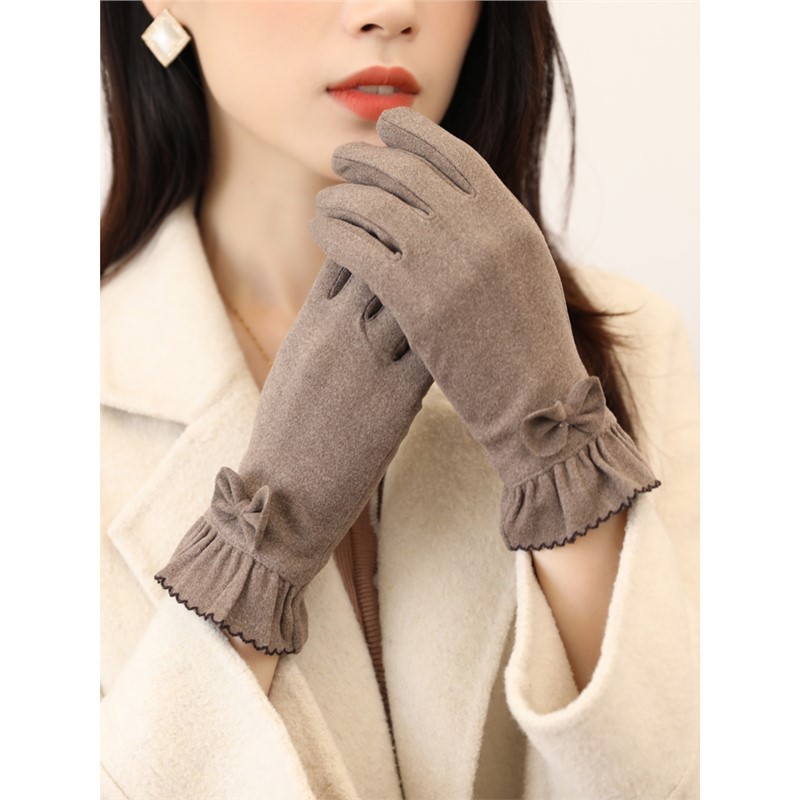 Sarung tangan musim dingin wanita dengan lapisan bulu domba, diperkuat untuk kehangatan, sarung tangan layar sentuh yang lucu, sarung tangan musim dingin beludru Jerman untuk berkendara sepeda listrik, tahan dingin YR