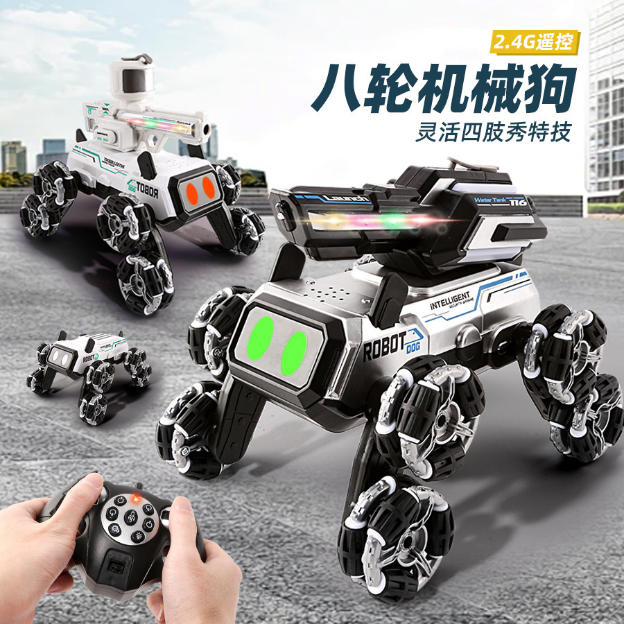 Cerdas Suara Robot Anjing Remote Kontrol Delapan Roda Stunt Drift Semprot Mobil Mainan Mobil Sensor Gerakan Anak Anak