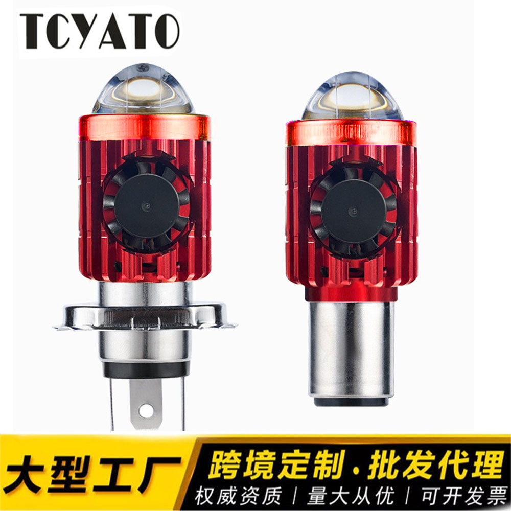 Lampu Depan LED dengan Kipas Sepeda Motor Terang Tinggi Lampu Depan Built-In Lampu Modifikasi Sepeda Motor Lampu Sorot Sepeda Motor Cakar Ganda Universal Mata Ikan