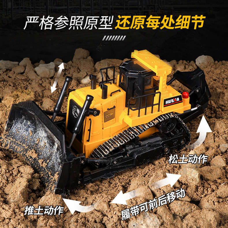 Huina tipe crawler remote control dua arah buldoser model remote control simulasi listrik 1:16 mobil mainan anak laki-laki dan perempuan