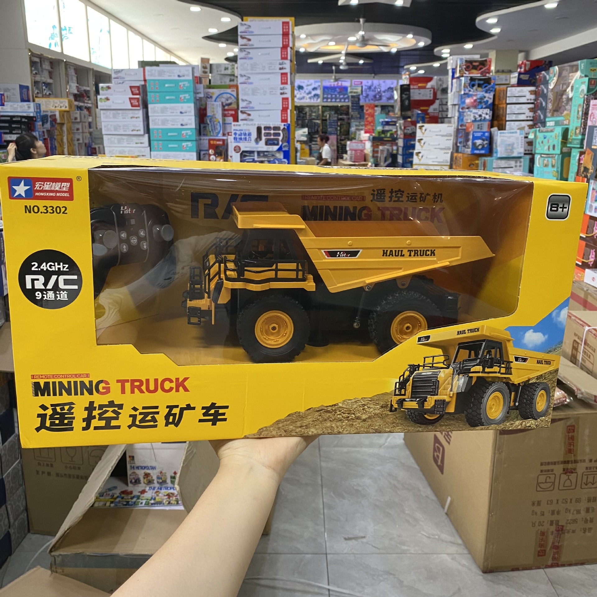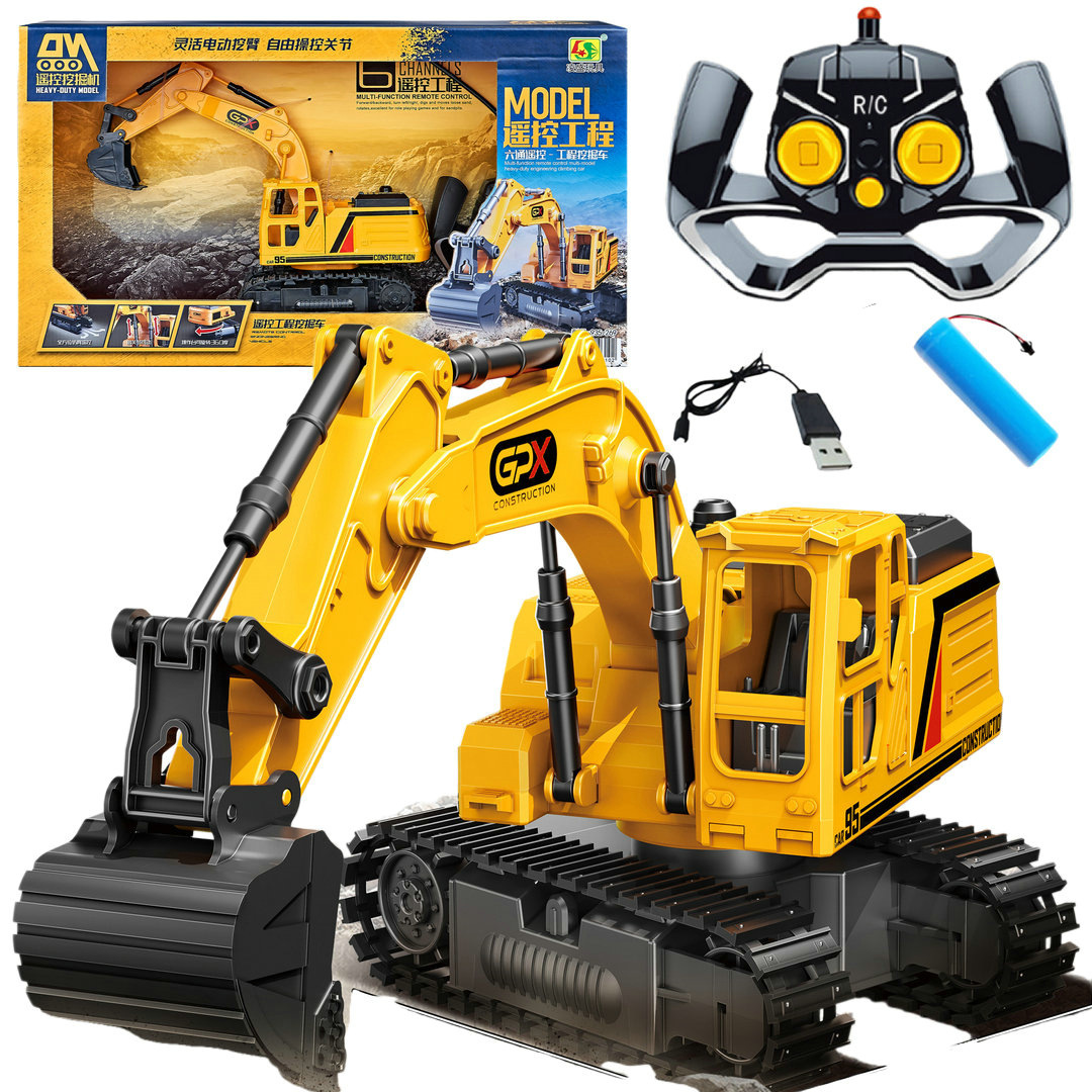 Model mainan mobil remot kontrol anak-anak, Hongxing, nirkabel, pengisian daya nirkabel, 9 saluran, multi-fungsi, ekskavator, dorong dan pertambangan, model mainan mobil