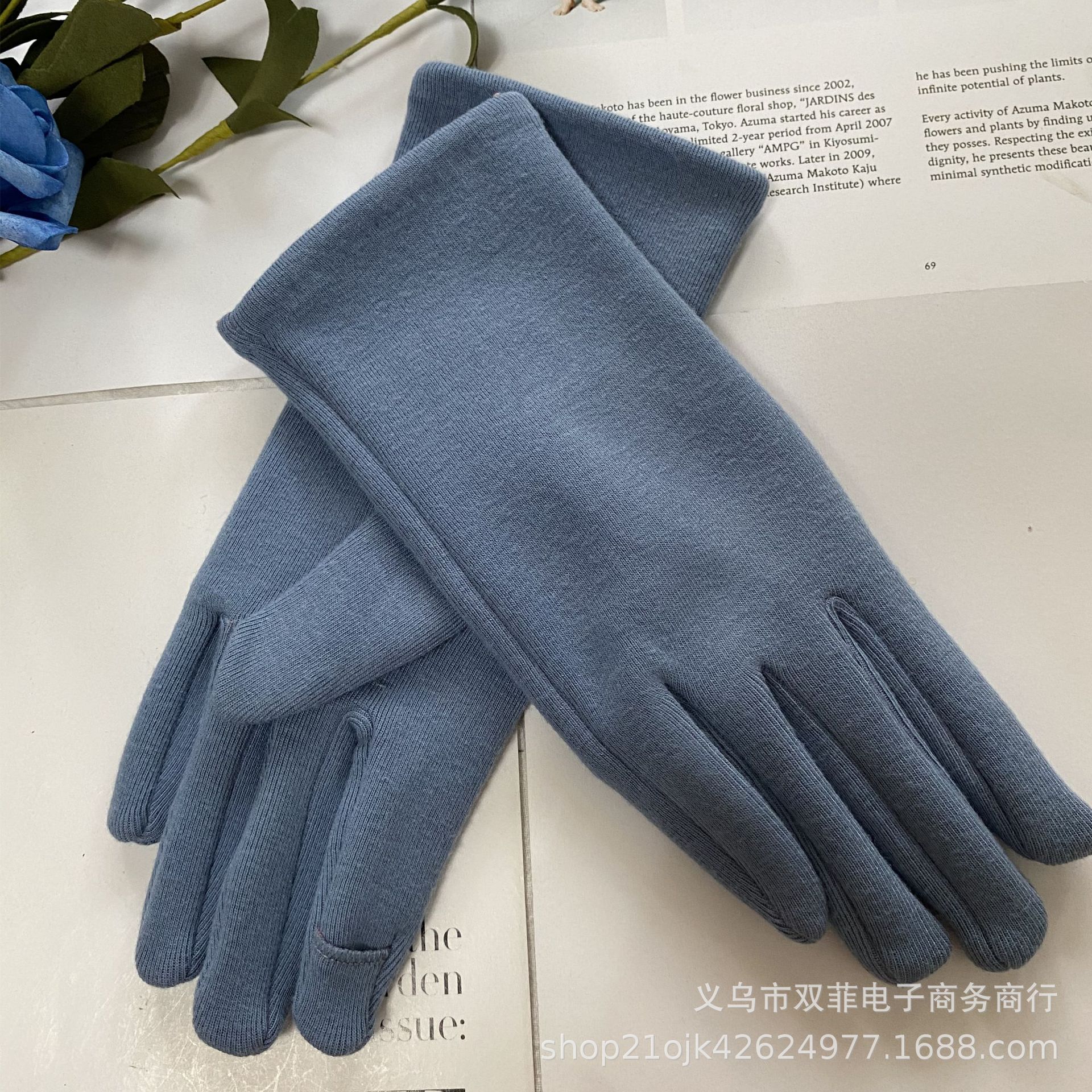 韩版冬季女士手套针织时尚保暖加绒防寒弹力骑行电动车触屏纯色