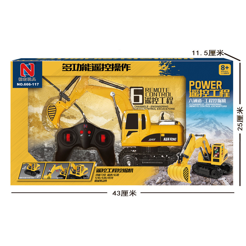 过家家六通道遥控履带挖掘机666-117亲子互动USB充电工程车玩具