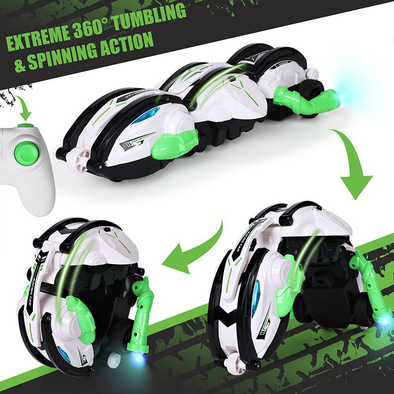 Lampu musik enam roda lengan ayun mobil aksi 360 ° berputar multi-postur mainan 2.4g pengendali jarak jauh kendaraan off-road