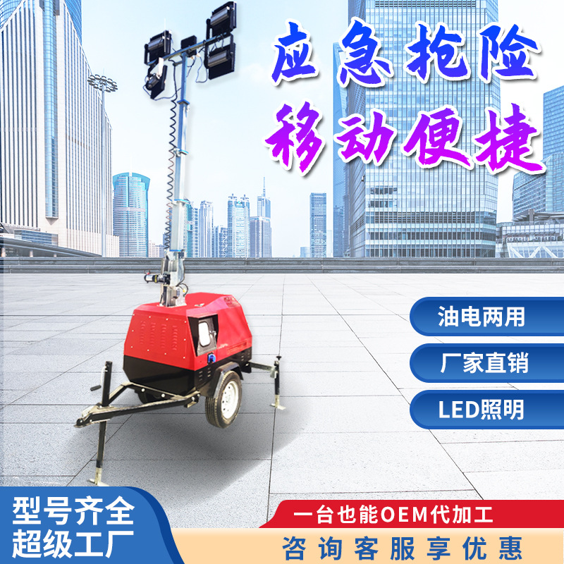 Pabrik Penjualan Langsung 7 m 9 m Trailer Mobil Penerangan Listrik Mengangkat Pencahayaan Mobile Lighthouse 360 Derajat Rotasi