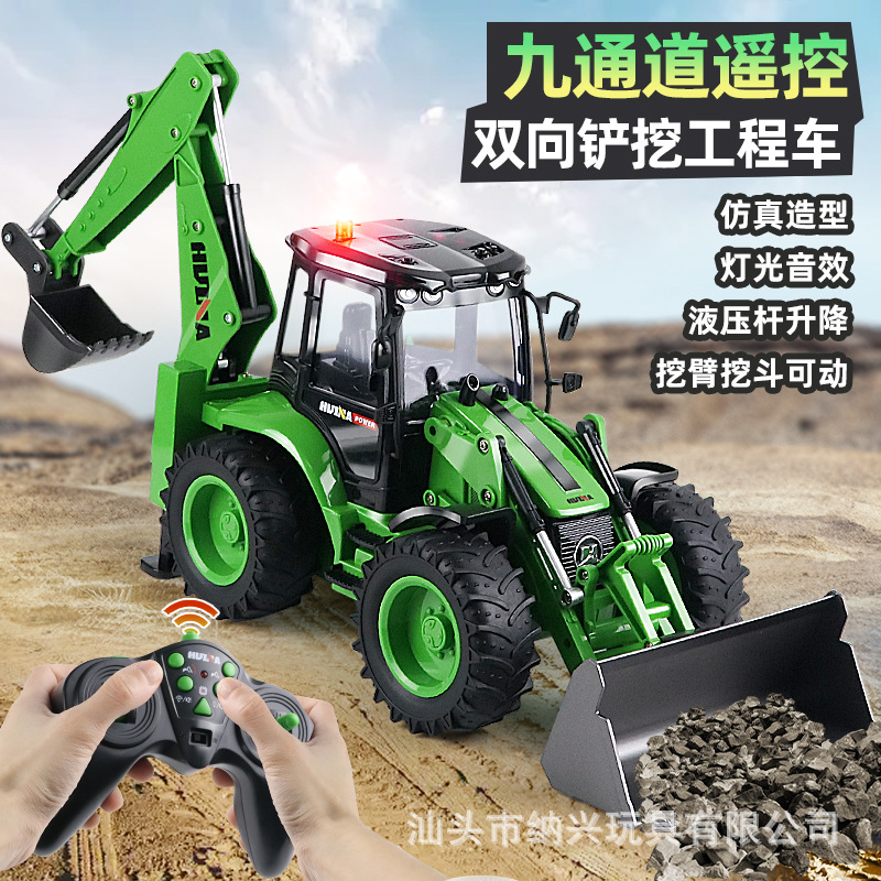 Cross-border mainan model kendaraan teknik simulasi suara dan cahaya mesin kait penggali forklift dua arah bagasi kendali jarak jauh baru
