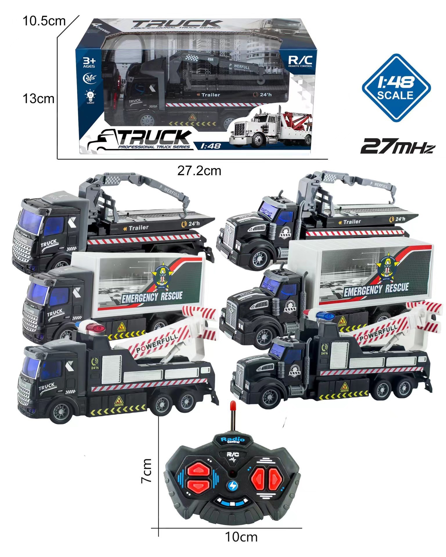 Mainan mobil remote control anak-anak lintas batas kendaraan penyelamatan lalu lintas batas rintangan jalan Membersihkan trailer transportasi datar model anak laki-laki
