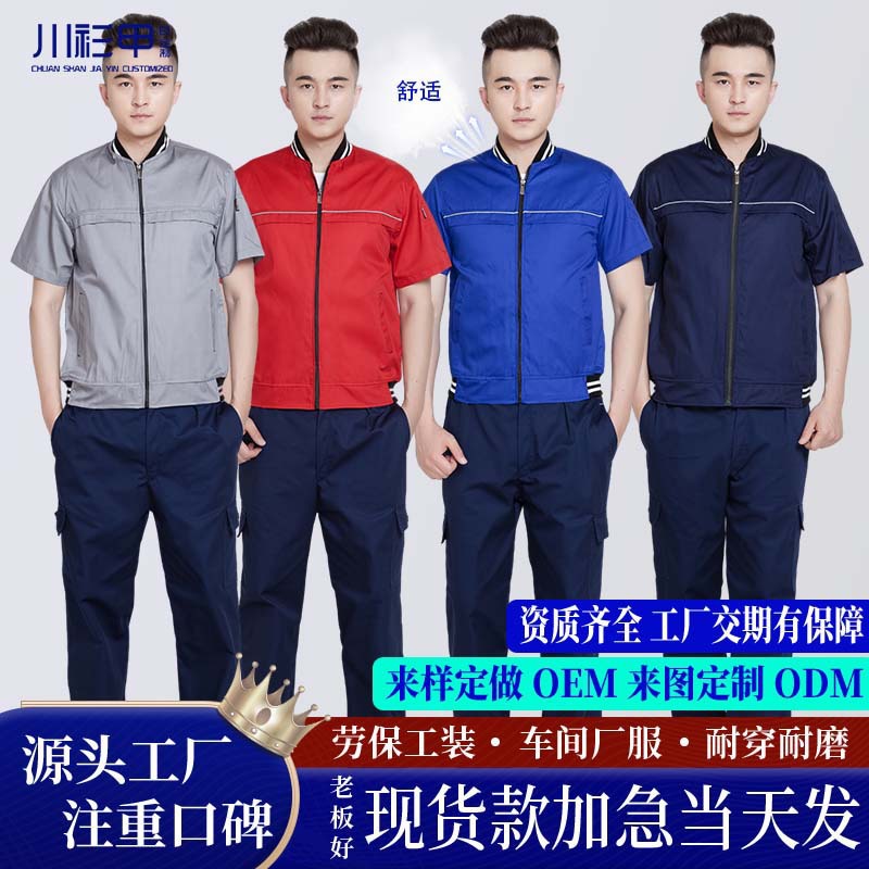 夏季短袖棒球工作服套装男电工薄款耐磨透气劳保厂服定制工装半袖