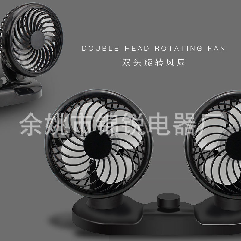 Kipas angin mobil berkepala ganda, antarmuka USB 12V24V truk van Universal 360 derajat arah penyesuaian