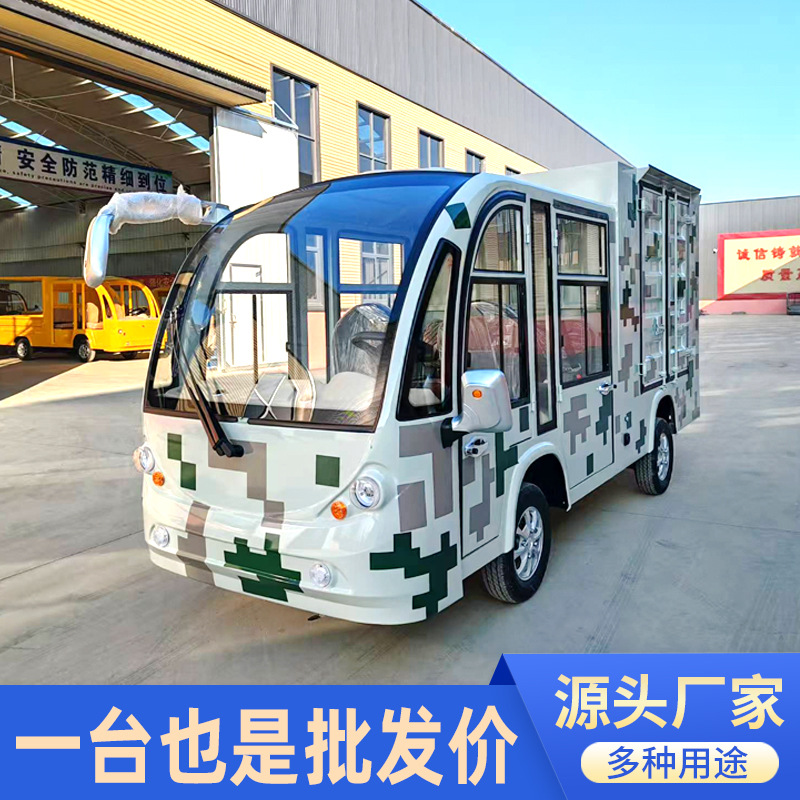 Mobil pengiriman makanan tipe kotak listrik Truk inspeksi area kamp kamuflase