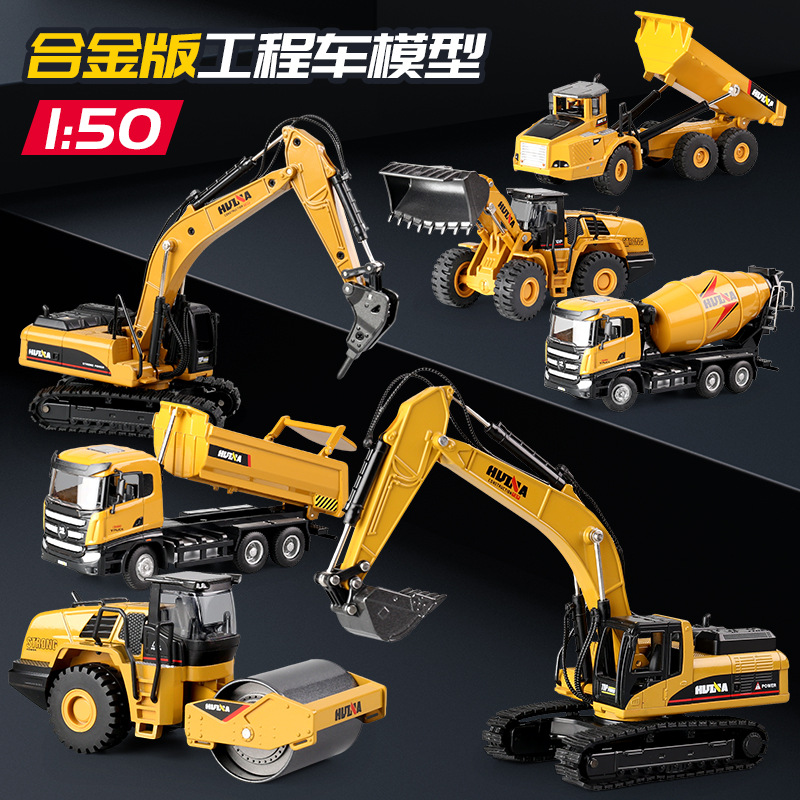 Huina mainan mobil ekskavator anak laki-laki, kendaraan teknik paduan remote kontrol 1:50