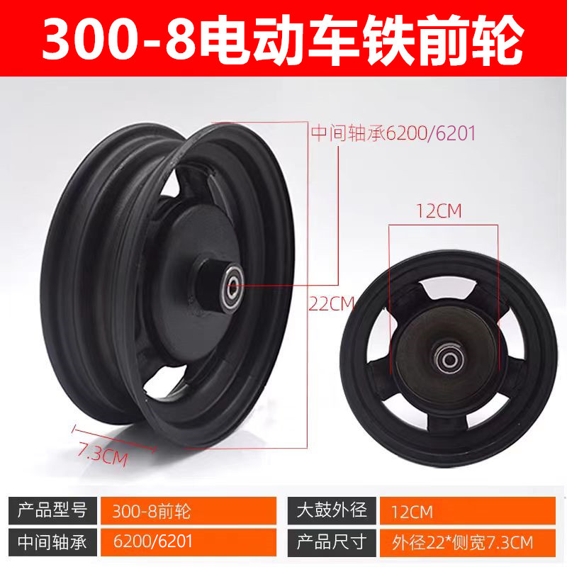 Roda depan besi 300-8 kendaraan listrik, vakum besi depan roda baja hub cincin dengan rem drum rim