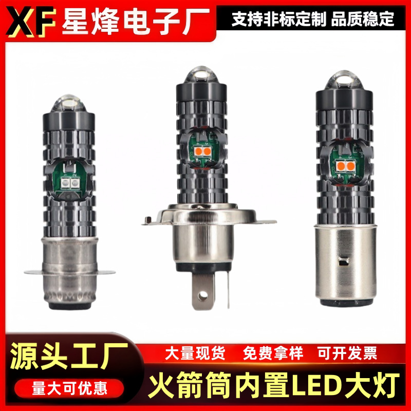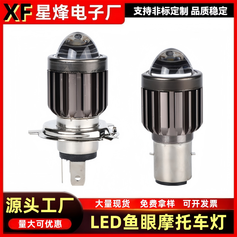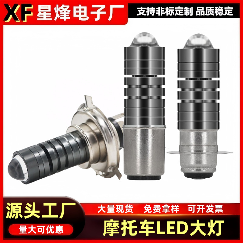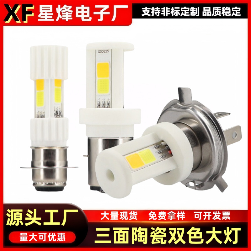 摩托车电动车LED大灯H4远近光一体 BA20D P15D 红蓝爆闪改装灯泡