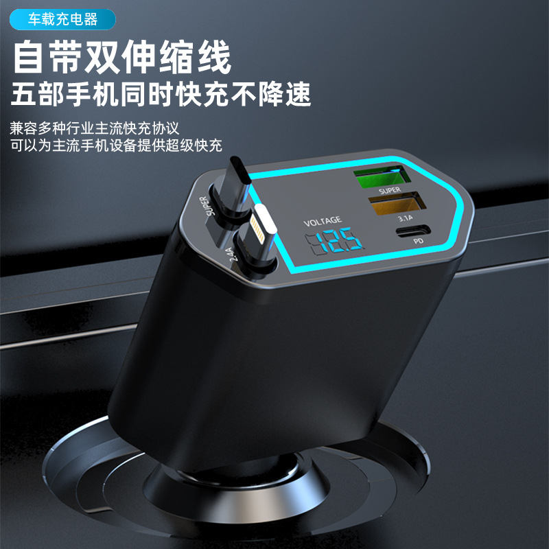 Pabrik Langsung Digital Tampilan 120W Super Cepat Charger Mobil Multi-port Kabel Teleskopik Pengisian Mobil Pengisian Flash