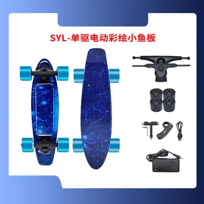 Papan ikan elektrik empat roda, kontrol jarak jauh pintar nirkabel skuter jalan keren baru dapat dilepas