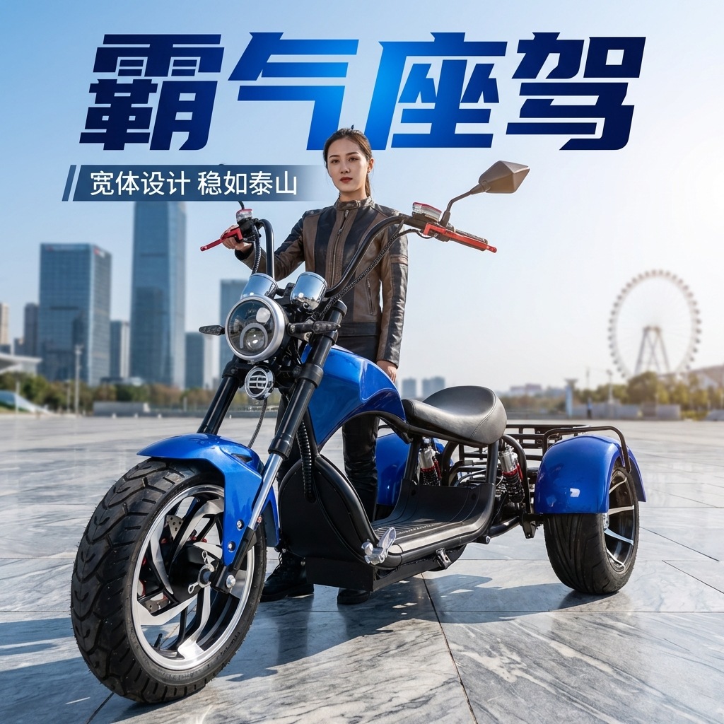 Harley skuter listrik tiga roda lintas batas, ban lebar sepeda motor off-road baterai mobil dua roda