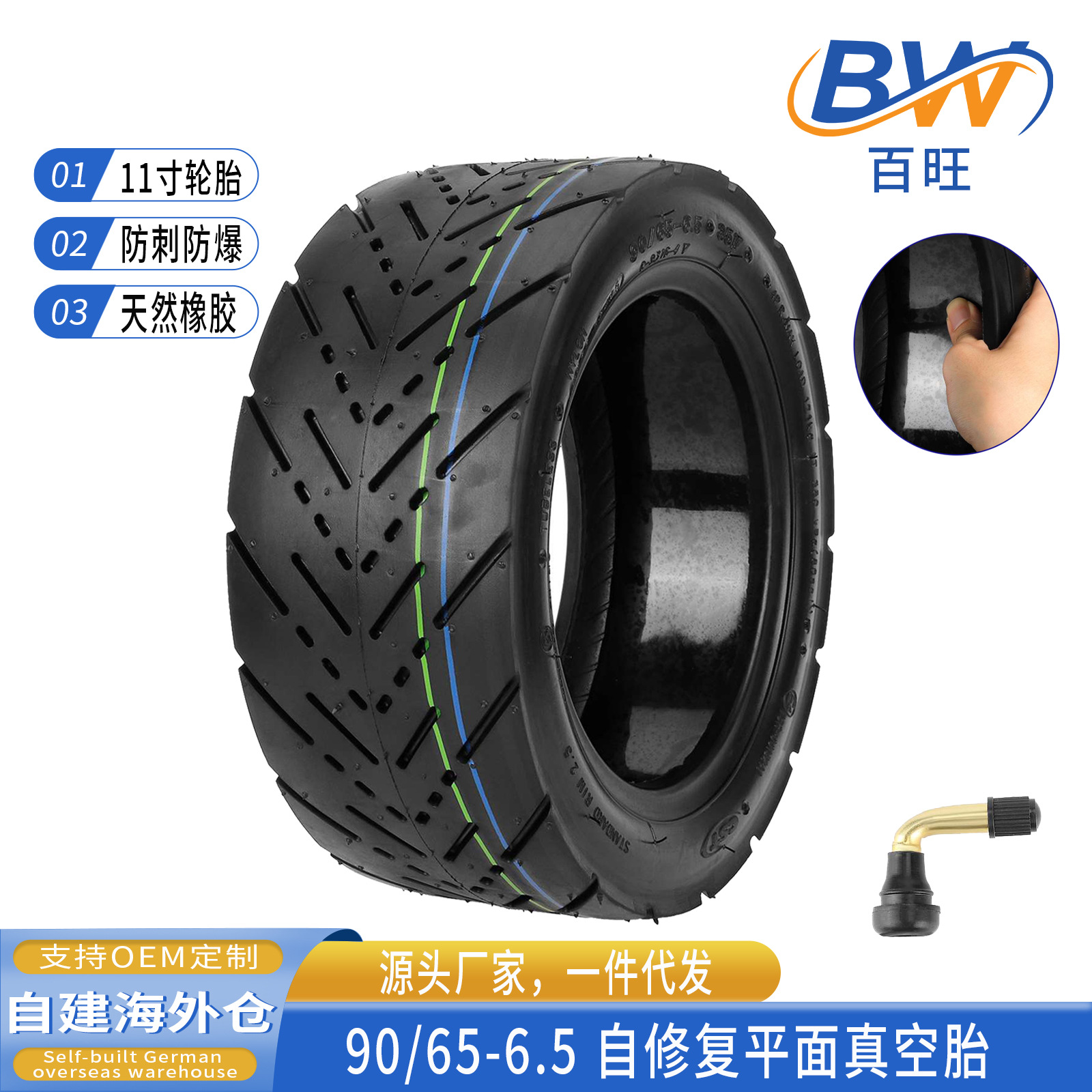 Cocok untuk skuter listrik 10 inci 10*3 tabung dalam dipertebal mulut melengkung dapat digunakan untuk mobil 10 inci seperti M4 PRO