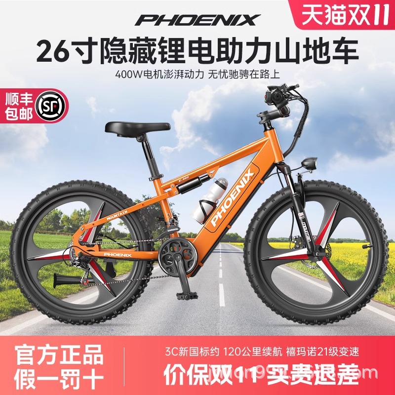 Phoenix Standar Nasional Baru Sepeda Berbantuan Listrik Pria dan Wanita Peredam Guncangan 21 Kecepatan Variabel Baterai Baterai Lithium Sepeda Gunung Listrik