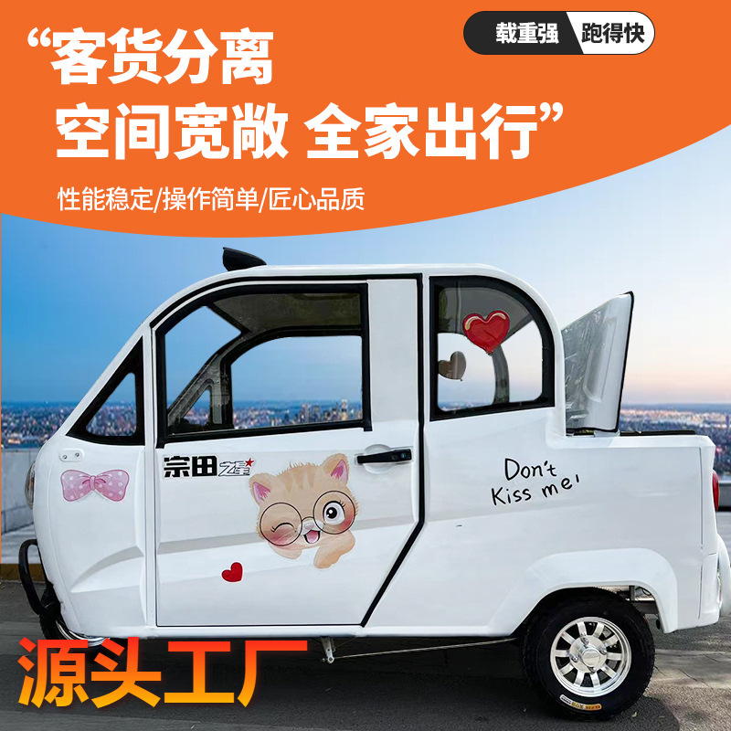 Sepeda roda tiga elektrik dengan shed dewasa Pertanian Berdaya tinggi baterai troli mobil semi tertutup truk ekspor lintas batas