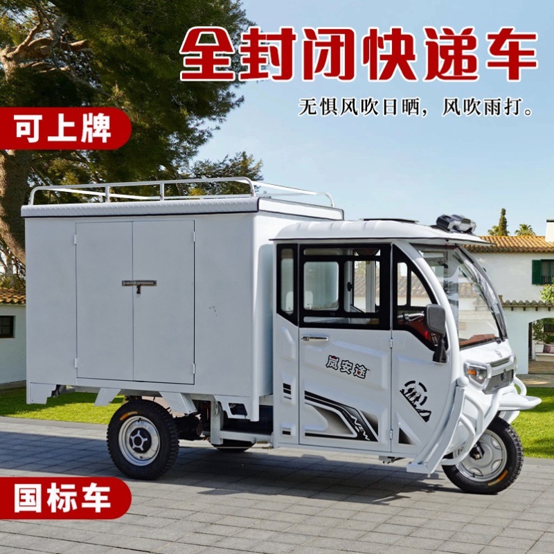 Sepeda roda tiga express kargo listrik baterai pengiriman muatan mobil tertutup penuh kotak kargo mobil kilat mobil listrik dewasa