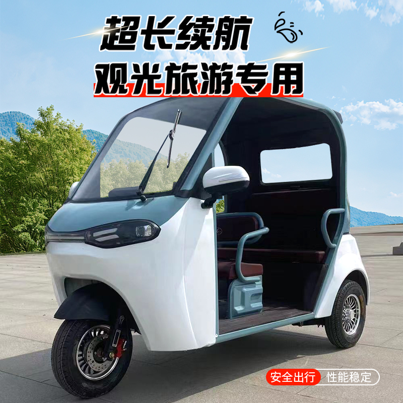 Sepeda roda tiga elektrik anak-anak, tiga roda tertutup penuh, lima pintu, empat kursi, penumpang, dan kargo, penggunaan ganda