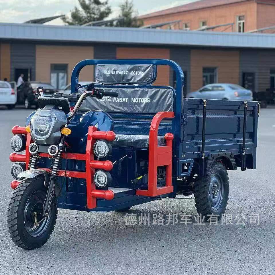 Tricycle listrik tertutup untuk menanjak, dengan kanopi untuk membawa barang, kendaraan kargo pertanian listrik bertenaga tinggi dengan tiga roda.