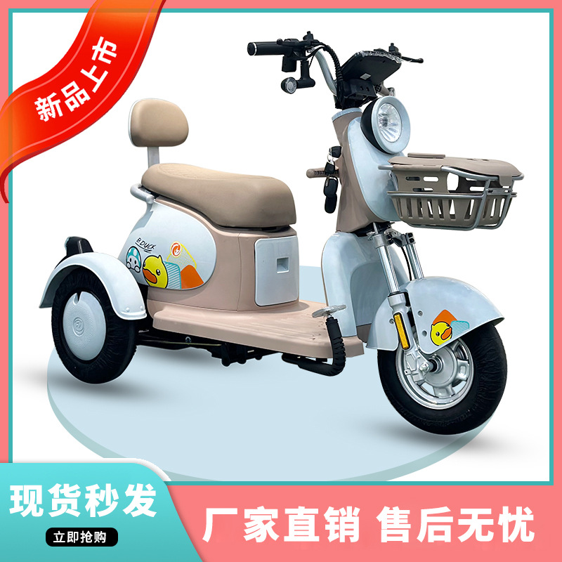 Sepeda roda tiga listrik, peralatan rumah tangga baterai kecil tiga roda pick-up anak-anak orang tua skuter perempuan