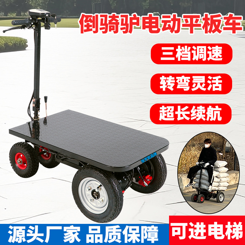 Truk flatbed listrik industri 100*60 truk roda tiga troli keledai terbalik ke dalam lift dekorasi tarik truk semen