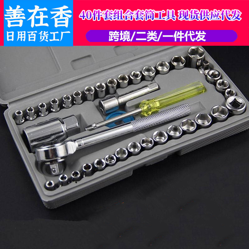 Set kunci pas multifungsi, 40 buah alat perbaikan sepeda motor mobil listrik kendaraan roda tiga kombinasi