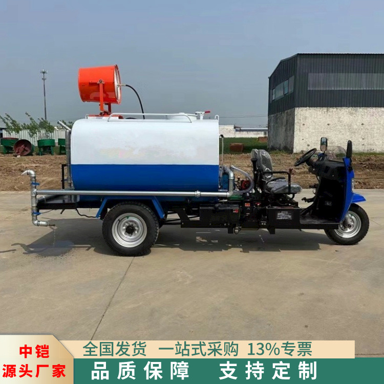 Sprinkler Diesel tiga roda dengan pistol kabut, 22 tenaga kuda, semprotan pistol kabut tiga persegi, kendaraan pengurang debu jalan