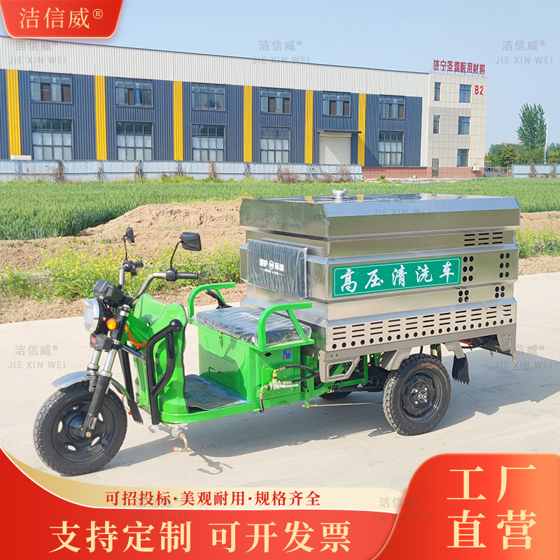 Mobil pembersih elektrik tekanan tinggi, mobil cuci, perlindungan lingkungan, sanitasi, kota, sprinkler tiga roda elektrik, Pembersih tekanan tinggi Stainless steel