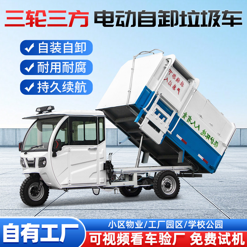 Truk sampah dump truck pengangkut sampah muatan sendiri properti kecil truk sampah elektrik tiga roda terpasang di ember