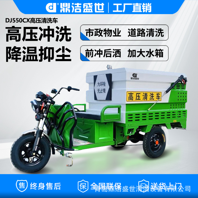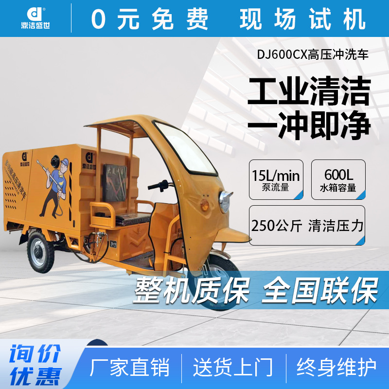 Dingjie shengshi mobil cuci elektrik, mesin cuci tekanan tinggi, properti mobil pembersih jalan sanitasi kota, tiga roda