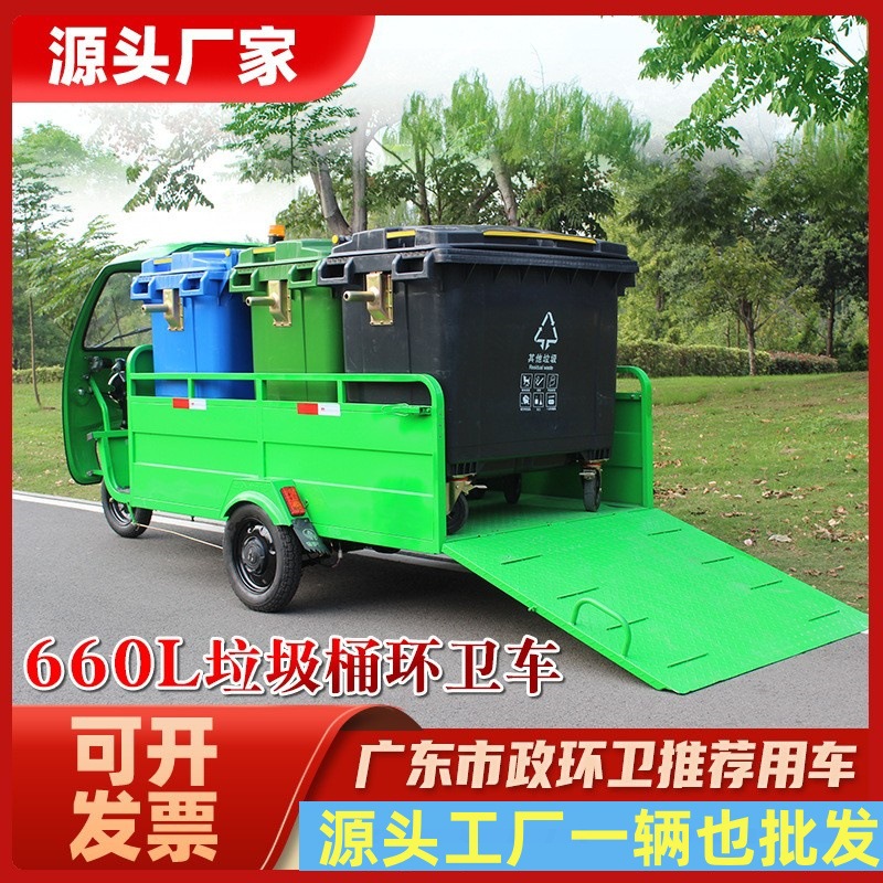 Kendaraan Pembersih Sampah Roda Tiga Listrik Kendaraan Sanitasi Flat Transpor Tempat Sampah 660 Liter Kebersihan Properti Komunitas Jalan