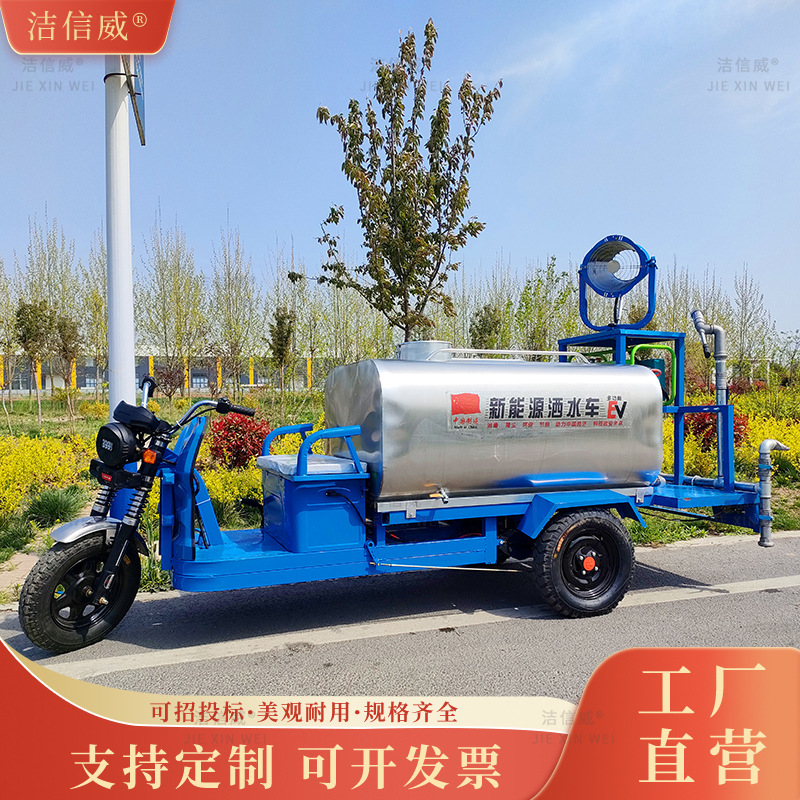 Sprinkler listrik tiga roda perlindungan lingkungan, bunga dan penyiram Debu kubik 1.5 baja tahan karat dan penghilang debu kabut meriam mobil