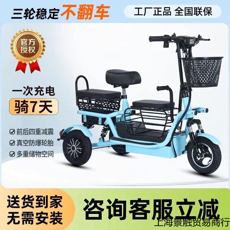 Sepeda roda tiga berjalan tua, santai rumah 9 inci sepeda listrik kecil 12ah mobil listrik grosir
