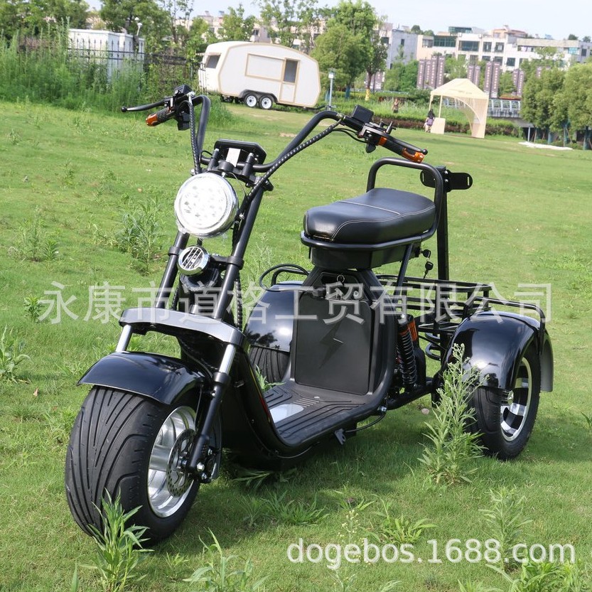 Sepeda listrik roda tiga gaya Harley dengan pengiriman lintas batas dari gudang luar negeri Doug, dilengkapi remote dan stand golf.
