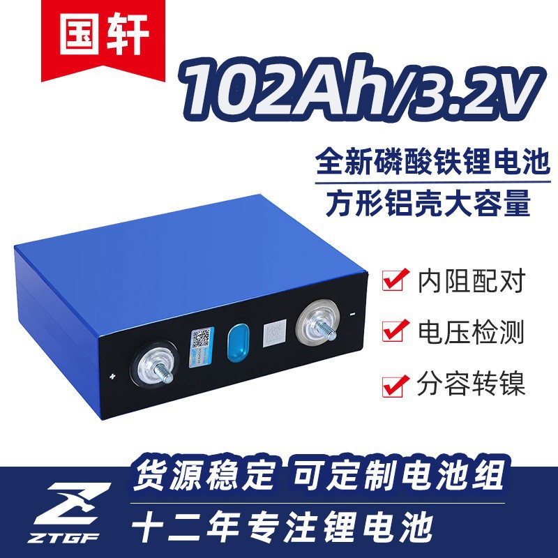 Baterai Lithium Energi Baru Guoxuan 102Ah Lithium Iron Phosphate 100Ah Sel 3.2V Baterai Surya Umur Panjang