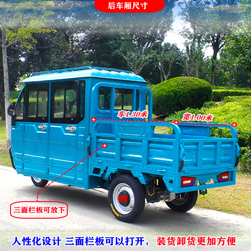 Tipe pegangan arah dapat dilengkapi dengan roda kemudi semi tertutup dua baris penumpang dan kargo ganda mobil baterai listrik roda tiga dapat membawa 4 orang