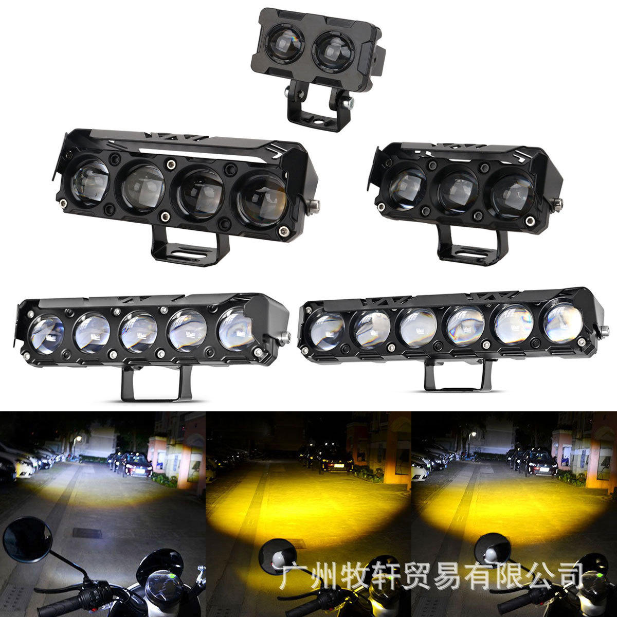 Lampu sorot sepeda motor lintas batas kendaraan listrik Lampu depan paving LED kuning dan putih dua warna lampu depan modifikasi sepeda motor sinar jauh dan rendah