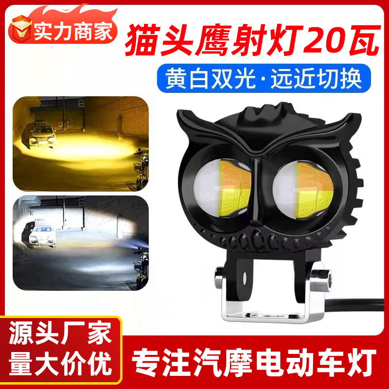 Lampu Sorot sepeda motor elektrik, lampu sorot burung hantu, lampu depan led jauh dan dekat, lampu sorot Eksternal dua warna, modifikasi lampu depan