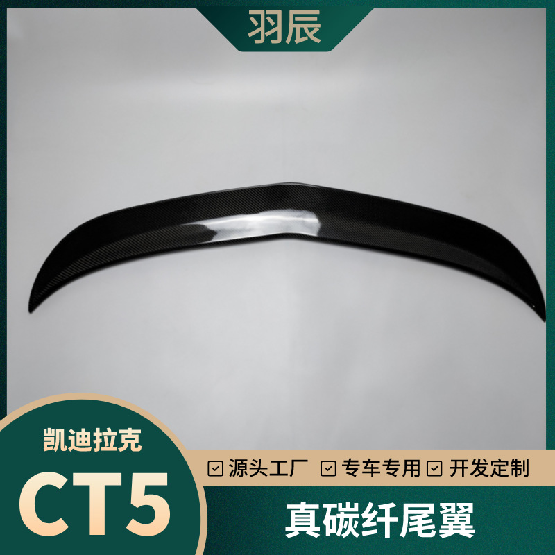 Cocok untuk Cadillac CT5 ekor serat karbon asli GP sayap tetap sayap hitam V bagian modifikasi dekorasi eksterior karbon basah