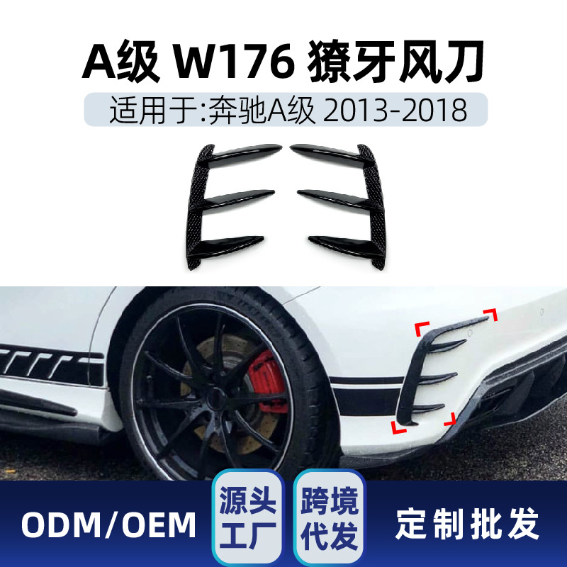 Berlaku untuk mercedes-benz a-class W176 A200 A260 bumper belakang pisau angin taring bumper stiker modifikasi pisau angin belakang