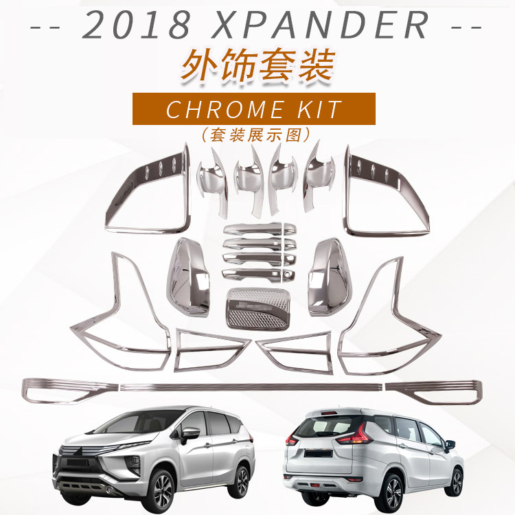 Cocok untuk 2018 Mitsubishi Xpander menangani pintu mangkuk cermin penutup tangki bahan bakar depan lampu kabut ekor penutup bagian modifikasi