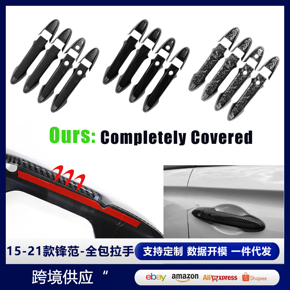 Cocok untuk 20 pegangan pintu mangkuk Pajero dimodifikasi pola serat karbon stiker dekorasi perak cerah bahan ABS